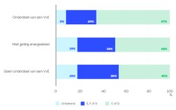 Op 1 januari 2023 had 51 procent van de woningen in beheer van een VvE en met een geldig energielabel een energiezuinig A- of B-label. Woningen binnen een VvE behaalden daarmee vaker een A- of B-label dan woningen zonder VvE, waar 48 procent een geldig A- of B-label had. Opvallend is dat ook het aandeel woningen met een ongunstig E-, F- of G-label binnen VvE’s iets hoger lag.